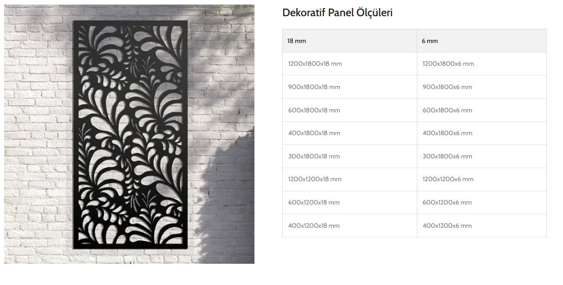 Bu çarpıcı paneli iç ve dış mekanlarda göz alıcı özellikler oluşturmak için kullanabilirsiniz. Duvara monte ederek dekoratif bir odak noktası veya zarif bir bahçe kafesi oluşturabilirsiniz. Ayrıca, bu paneli kullanarak şık bir çöp kutusu perdesi, bölme veya gizlilik perdesi tasarlayabilirsiniz.